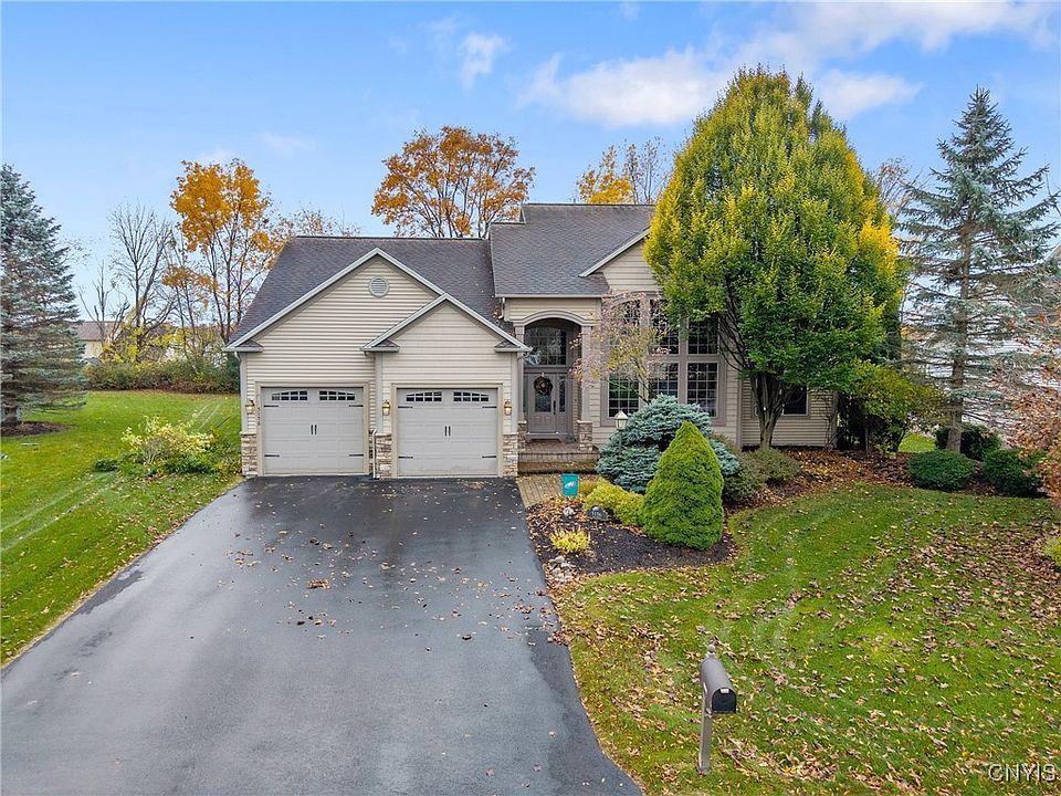 Luxury living in highly desirable Country Meadow neighborhood! This 2008 Loscombe Parade of Homes model is loaded with designer upgrades & thoughtful features throughout. Over 3500sqft finished living space offering 4 bedrooms w/ flex 5th bedroom or ideal first-floor office, this home is as functional as it is beautiful! Step inside two-story foyer to impressive double-sided gas fireplace w/ floor-to-ceiling stone, creating a dramatic focal point in both great room & kitchen. The oversized chef’s kitchen features coffered ceiling, top-of-the-line stainless appliances, including upgraded 36" Thermador range, granite countertops and island, and added in 2014 a custom wet bar with built-in ice maker, for all your entertaining needs! Slider to backyard patio lined with privacy trees 2015, a built-in gas firepit, outdoor speakers connected to 2-tier sound system & lifetime-warranty LED lighting around patio. 1st floor primary suite is a true retreat with stunning vaulted tray ceiling, cove lighting, custom electronic darkening shades, large custom closet, double granite vanities, a luxurious walk-in shower, and soaking tub. Conveniently adjacent is spacious 1st floor laundry and custom mudroom w/ built-ins leading to 3-car tandem garage. Dual staircases carry you to the 2nd floor, where you’ll find aesthetic loft overlooking great room & 3 generous bedrooms connected by Jack-and-Jill bath. Prepare to be impressed by the finished lower-level MAN CAVE—a dream entertainment space complete w/ theatre room featuring high-def projector to ensure the clearest & sharpest quality while watching your favorite team! Top-tier surround sound w/ 5 speakers & subwoofer, custom shelving, trophy case & built-in storage bench w/ egress window. Expanded in 2017, adjacent 19x12 “Whiskey Room” showcases beautiful 10' cement bar top designed to resemble wood, luxury vinyl flooring & a wine/beer fridge. This additional space not included in square footage. Furnace 2021. New AC. French drains added to unfinished storage room 2022, & water-gravity backup to the sump pump. New paint throughout. This home has been meticulously maintained from top to bottom! Showings begin Thursday 10/30 11am.