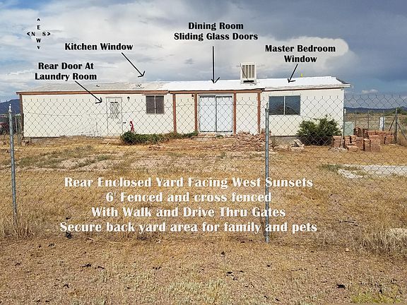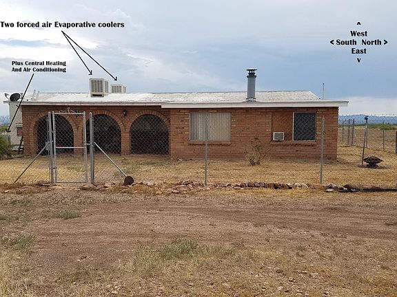 9.4 Acre 5 bedroom 2 bath self sustainable private ranch retreat. A true paradise for those who wish to escape city or suburban life and dwell with family in a secure private ranch style desert environment. Solar water well, livestock pasture and mega room for vegetable gardening. Buy cash or owner can finance complete note. Sale negotiable. Main bathroom has Tub with shower and enclosed glass. Master bath has oversize love tub non- jetted with shower head and curtains. Wall coverings are 1978 dark wood paneling except for white painted bathrooms and downstairs 5th bedroom or office addition is brick adobe style construction with concrete slab flooring. Residence has two large evaporative swamp coolers each with independent interior controls. It also has a 4 ton central heating and air conditioning system added in 2016. Central Heating operates off Propane exterior tank filled as ordered by local firm. All other utilities are electric via underground cable. The downstairs brick addition contains a standalone fireplace and can be used as a large office, bedroom or guest quarters. Water well is solar and fills A 2500 gallon reserve primary water tank that provides water to the property and can also be filled from local water supply firm for about $90 total cost if needed. The tank is plumbed for reserve gravity feed and main water supply power pump assisted. There is an exterior covered brick frame well house and property has half of the 9.4 total acres cross barbwire fenced in for horse pasture etc. and homes front and rear immediate attached enclosed yards are fenced and cross fenced with 6 foot high chain link, with walk and drive through gates. Property access is on a half mile gravel road from paved highway. Property is adjacent to BLM land of the Coronado National forest with a ranger station nearby. Area is serene and tranquil with an abundance of natural desert wild life. Located in a very large valley surrounded by The Mule Mountains to the west, The Chiricahua Mountains to the North and the Perilla Mountains to the east. Property has several above ground visual accessible gem fields. Owner will carry note with a reasonable down payment with balance financed at a low interest rate to be managed by a local mortgage firm who will run an impound account for monthly payments that will cover all taxes, insurance, principle, interest and other fees charged monthly for management of the loan. Has Centurylink wired unlimited high speed internet access service available for only $35 monthly and is Dish Network satellite TV equipped. Visit the following web address to view 2018 2 minute inside walk thru. Enter complete address in your web browser, https://fobianworldreunion.com/DouglasAZWalkThru.html