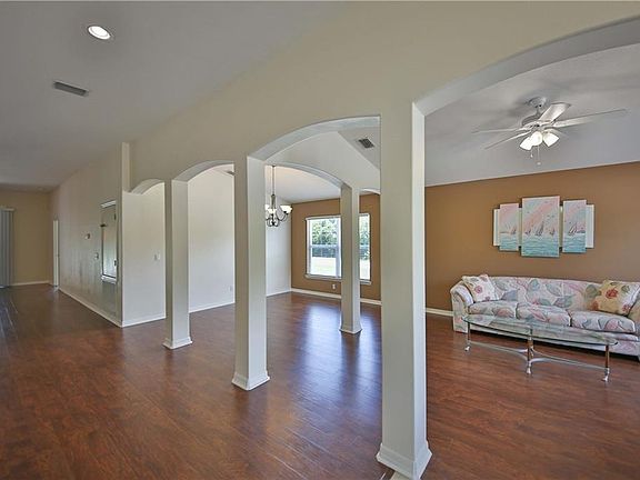 PRICE REDUCED FOR QUICK SALE on this immaculate custom 2400 SF 4-bedroom, 3-bath, 3-car-garage property with formal living-dining area divided by columns (would also make an excellent spot for your pool table) + family room/breakfast nook, 11x14' screened/tiled lanai + 12x14' open patio on lushly landscaped oversized corner lot. 10X12 utility shed. Impressive curb appeal! Gleaming laminate & ceramic tile throughout (no carpet!). Double-door front entry. Spacious 18x13' master bedroom. Elegant master bath with large step-in shower + separate garden tub, dual vanities, huge walk-in closet! Upgraded fans & lighting throughout. Newer stainless appliances, AC and hot water heater, Solid wood cabinets, corian countertops! Inside laundry! Walk-in closet in 4th bedroom. NO DEED RESTRICTIONS! NOT IN FLOOD ZONE! Available immediately! NOTHING COMPARABLE AT THIS PRICE!! Owners have lavished care & now been transferred. Sad for them, lucky for you!