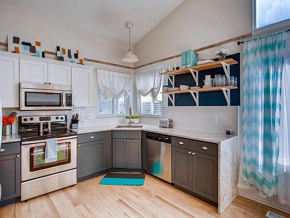 Light Bright Open Floorplan! Fantastic Curb Appeal, Newer Large Rear Deck And Flat Backyard, Newer Roof And Exterior Paint. Inside You'll Find Upgrades Thoughout! Updated Lighting, Tiled Backsplash, Granite Waterfall Edge Countertops, Stainless Steel Appliances, Undermount Sink, White And Grey Cabinets, Engineered Wood Flooring, Built-In Shelving. Vaulted Main Level And Master, Upstairs Has A Nook For Office Space, 3 Bedrooms With An Updated Jack n Jill Bathroom Highlighted By Granite Counters And All New Tile. The Finished Walkout Basement Boasts Lots Of Natural Light, An Open Main Area With An Additional 4th Bathroom! Close to Endless Shopping, Open Space, Parks And Trails. Top Rated Schools, The HOA Includes Access To 4 Family Friendly Rec Centers! Don't Wait Long To Show Expected To Go Quickly!
