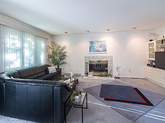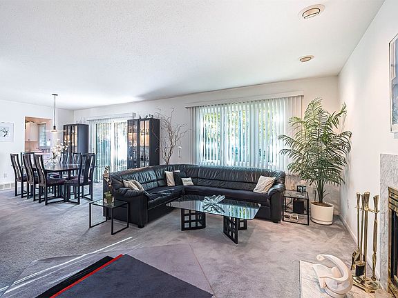 Wood burning fireplaceInviting master bedroomTwo car garageLush landscapingExtra storageInformal dining areaVaulted ceiling