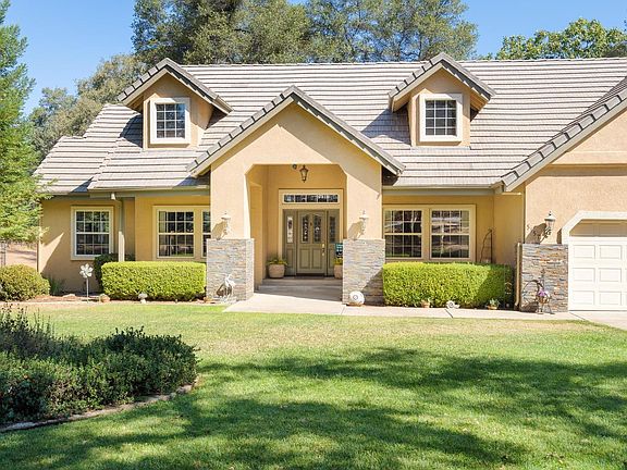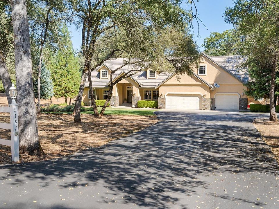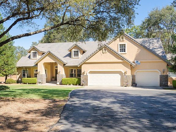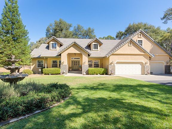 Milton Ranch gated community presents this stunning custom single story home. Spacious open floor plan showcases soaring ceilings, wood burning fireplace, stone flooring and surround sound. Dazzling granite island kitchen features freshly painted cabinets, breakfast nook and pantry closet. Take advantage of having a home office room, Junior master suite, formal dining area and laundry room. Tranquil master suite has outdoor deck access, jetted tub, stall shower, dual sinks and walk in closet. Entertain in style out on the spacious back deck where you will find an outdoor kitchen perfect for those summer BBQ parties. Enjoy the spacious backyard. Located near Hwy 50, schools, shopping, dining and more