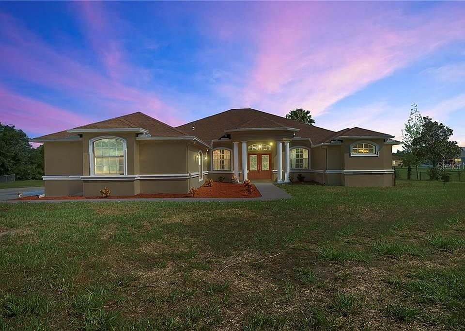 Stunning 3/2/2 w/BONUS room/office on a LAKE sitting on .60 acres on a Cul-de-sac. Fenced in area on the right side of the house. Honey stop the car. This Michael's custom home with 2412 sq ft. was built in 2007. Exterior and Interior was repainted and gutters added to the house in 2016. The kitchen features granite counter tops and wood cabinets with Stainless Steal appliances replaced in 2016. Home features crown molding with ceiling fans throughout the home. Beautiful Travertine tile floors were installed in the entire interior of the home in 2016 with ceramic tile in the Florida room. This home features an indoor Laundry room, Kitchen nook, a formal dining room, Living room and a Family room with trey ceilings and a fireplace. Feel the spoils of your large Master suite with trey ceilings and custom wood framing shadow boxes. Unwind in your Master Bathroom with his/her sinks, separate water closet, jaccuzzi tub and a walk in shower with dual shower heads. Enjoy relaxing in your large Florida room with plenty of fans, tiled floor and outdoor kitchen. Outside features a long driveway and an OVERSIZED 2 car garage. Bring your toys/trailiers/boats. No HOA here! Make your appointment today, don't delay, fall in love and make an offer.