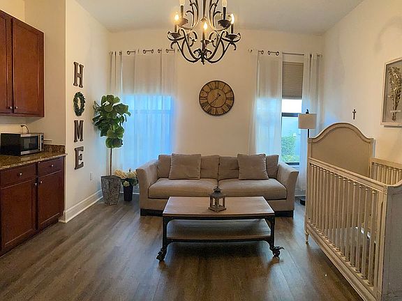 Welcome to this fully upgraded Duvall model home that is within walking distance of downtown, Publix, restaurants/pubs, the oratory, and town shops. The main house encompasses 4 bedrooms and 3 full baths. A guest house is included with its own kitchenette, bathroom, bedroom, and living area. While the front faces the street, the back of the house has a porch overlooking the lake. Overall, this house has had around $230,000 in upgrades. To see specifics on these upgrades, check out the list below: - Every room contains a walk-in closet - Engineered wood floors around house - Level 5 porcelain tiles in kitchen, downstairs bathroom, laundry room, and walk-in pantry - Smart light switches throughout the house - Blackout shades throughout house - Hurricane proof windows all around - Front courtyard and back porch are screened in - New ceiling fan installed (back porch) - New gutters installed - Drinking water filter installed; removes chlorine and ammonia (found in laundry room) : "Tyent" - 3 automatic garage door openers - Farmhouse sink with rubbed bronze faucet in kitchen - Level 5 cabinetry with 4 containing glass doors in kitchen - Velvet stone counter tops (2 inches thick) - Exhaust fan (stove) - 100% white linen shades in family room, kitchen, nook, and laundry room - Staircase made of iron and wood - Landing windows are a stained glass attached to the impact windows - 2 columns removed from living room - Master bedrooms den had an opening that was closed in for privacy - Walk-in closet was built in master bedroom - Guest house floors are vinyl plank, water and scratch proof