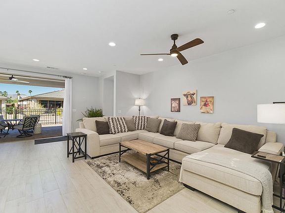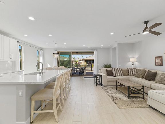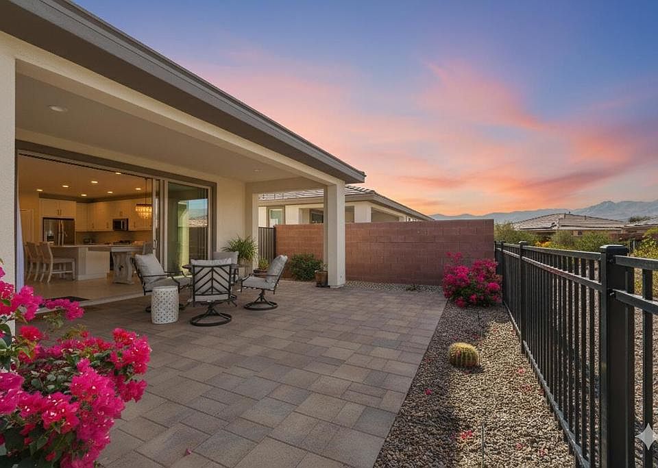 Experience the pinnacle of active 55+ desert living in this turn-key, nearly-new Valetta floorplan at Trilogy at The Polo Club. This home is designed for the discerning individual seeking a seamless fusion of contemporary elegance, effortless single-level living, and a vibrant social calendar. The open-concept design immediately captures attention, flowing into a state-of-the-art gourmet kitchen defined by a Quartz slab center island, sleek soft-close hardware, and a high-end KitchenAid stainless steel appliance package. The layout is enhanced by a versatile den/bonus room and a luxurious Primary Suite, while the West-facing patio frames stunning mountain views--perfect for evening relaxation. The home is equipped with a fully-paid-for solar system, providing immediate and substantial long-term utility savings. Best of all, a highly desirable Club Membership is available for transfer to the new owner, granting exclusive and immediate access to Trilogy's world-class resort amenities, including the fitness center, pools, and on-site restaurant, ensuring a life of connection and convenience.