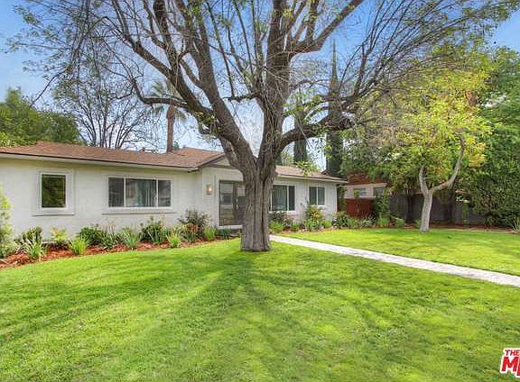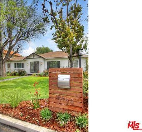Exquisite 4 bed/3 bath contemporary in convenient lovely Encino location within Hesby Oaks School district. Open living room blends seamlessly with dining room and media room, presenting the perfect combination of style and functionality. Light and bright with high ceilings and recessed lights. Huge modern kitchen features breakfast bar opening to the family room, sleek subway tiles and quartz counters and an abundance of counter and cabinet space. Kitchen opens to a large breakfast room with French doors leading to gate enclosed side yard. Dining room opens to backyard, and features an elegant wet bar, perfect for entertaining. Large master suite with spacious sitting area and huge walk in closet has French doors leading to large deck and beautiful swimming pool. Two additional large bedrooms share a bathroom with double sink vanity. The fourth bedroom features its own bathroom & private entrance. The lovely private back yard includes a bonus side yard and covered patio.