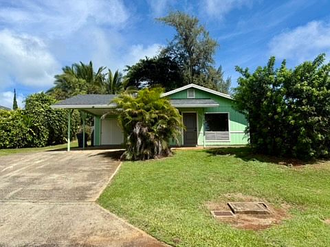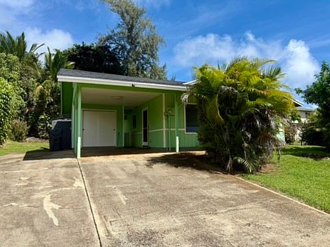 A beautiful and well maintained 3 bedroom 1 bath home that was recently renovated in Kapaa. Great location off Ohu rd, close to Kapaa Elementary and Kapaa High School. Short drive to Kapaa town and Kealia beach. The property is on a corner lot which provides a spacious yard and covered carport. Updated kitchen with a microwave, dishwasher, range, and nice size fridge. Modern bathroom as well. A/C is provided by window units in all 3 bedrooms. Washer and dryer is located in the carport.
