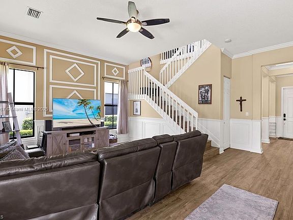 PRICE REDUCED—WON’T LAST! Beautiful Danby Model with pool and lake views! Features 4 bedrooms, 3 baths, large loft, millwork, engineered floors, and spacious kitchen with 42" cabinets, crown molding, tile backsplash, and granite island with breakfast nook overlooking pool and water. Formal dining, 1 bed/1 bath downstairs; upstairs has 3 bedrooms, 2 baths, and loft. Master offers dual sinks, tub, and shower; Jack & Jill bath serves 2 bedrooms. Exterior includes 7 security cameras, fenced yard, screened lanai, covered patio, and in-ground pool with stunning views! Located in Maple Ridge within award-winning Ave Maria, with clubhouse, pool, billiards, plus community waterpark, dog parks, playgrounds, trails, shopping, and dining.