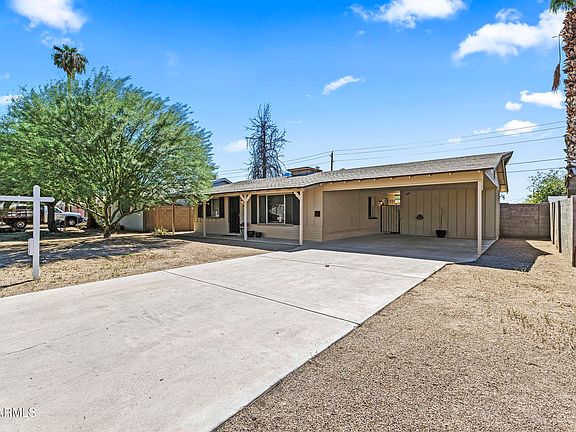 Fantastic opportunity to own this charming single-level home! 2-carport spaces and a cozy front porch are just the beginning. The inviting interior showcases abundant natural light, a neutral palette, and tile flooring throughout for easy care. The formal living room is perfect for receiving guests. The eat-in kitchen has an SS elec range w/hood, sleek quartz counters, and espresso shaker cabinetry. Featuring a 2-bed & 1-bath layout, this gem is a smart choice for first-time buyers or anyone seeking a low-maintenance lifestyle. Check out the large backyard, which offers a sizable open patio to relax or enjoy BBQ! With room for a pool, you can make it a complete outdoor oasis. Excellent Phoenix location close to schools, shopping, dining options, and freeways. Don't miss out on this gem!
