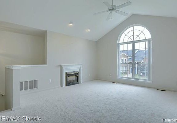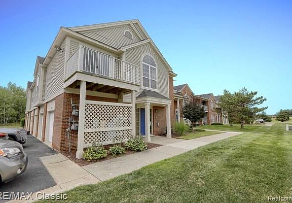 Welcome to this beautiful well maintained upper-level ranch end unit condo located in highly desirable North Point Village community with 2 Bedrooms and 2 full baths. 1,358 Sq. Ft. Private entrance onto the ceramic foyer leading up the staircase with brand new carpeting throughout. You will love the open floor plan concept with the great room with large picture window with natural light, vaulted ceiling, ceiling fan, cozy natural gas fireplace with beautiful ambiance. Great Room open to dining room and kitchen spacious with maple cabinets and all appliances to stay. Kitchen with Breakfast bar, Dining room has door wall to private deck for your relaxation. Professionally painted throughout 2025. Master bedroom suite with brand new carpeting, cathedral ceilings, large walk in closet and private master bathroom suite with shower. Second bedroom generously sized with new carpeting, Located near additional full bathroom with tub shower combination. Convenient first floor laundry with washer and dryer to stay and linen closet. Spacious garage with extra storage space and hose bib. Condo HOA includes. Beautiful pool, play yard, tennis courts and walking paths. Reasonably low association fee. Includes snow removal and lawn and grounds maintenance. Conveniently located nearby Expressway, shopping, dining, and entertainment. Immediate occupancy, easy to show and sell.