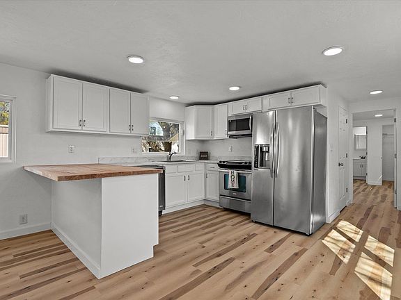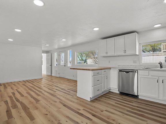 This fully remodeled home offers modern comfort and style. With two spacious bedrooms and two full bathrooms, there's ample room for relaxation and convenience. The new windows allow natural light to brighten the interior. The upgraded flooring adds a touch of elegance, complementing the fresh paint throughout the home. The renovated bathrooms feature modern fixtures and finishes, providing a luxurious retreat for its new owners! The brand-new kitchen is sure to impress with its open design and butcher block countertops, making meal preparation and entertaining a breeze. Additionally, the inclusion of mini-split air conditioners ensures optimal climate control for year-round comfort.