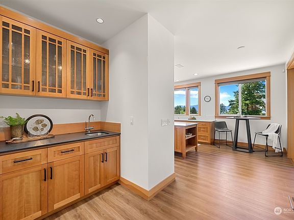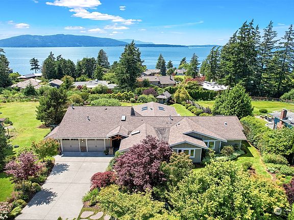This beautiful single-level Edgemoor estate is truly one of a kind. The well-designed floor plan makes it an entertainer's dream, with seamless indoor-outdoor flow and ample square footage for hosting guests. Stunning bay and island views can be enjoyed from nearly every room, showcasing the beauty of the neighborhood and its surroundings. The chef's kitchen, equipped with updated stainless appliances, opens up to a heated covered patio featuring a gas fireplace and an outdoor BBQ kitchenette. The expansive yard and mature landscaping create a tranquil and private enclave in this sought-after neighborhood. This home presents a unique opportunity in Bellingham's south side, offering a perfect blend of luxury, comfort, and natural beauty.