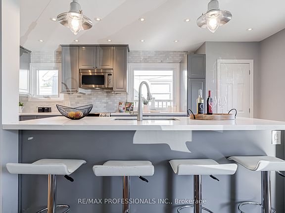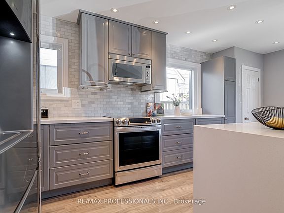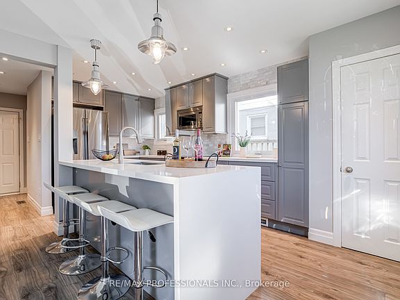 Welcome to this eye-catching, beautifully maintained detached 1.5-storey home filled with warmth, character, and modern updates. Set on a deep 120-ft lot with newer fencing, a private drive for three cars, a detached single-car garage (as-is), and great curb appeal, this home offers the perfect blend of comfort, function, and style. Inside, you'll find a bright and inviting layout featuring a renovated kitchen with newer appliances, a large island with quartz counters, and plenty of storage and prep space. The main floor also includes a flexible room ideal as a third bedroom, home office, or nursery, along with an updated 4-piece bath complete with a deep soaker tub and modern fixtures. From the main level, enjoy a walkout to a private backyard patio, perfect for relaxing or entertaining outdoors. Upstairs are two generous bedrooms with large closets, while the finished basement provides excellent in-law suite potential with brand-new flooring, a wet bar, electric fireplace, two separate rooms, and a new washer and dryer. Major components have been recently updated, including windows, furnace, air conditioner, tankless water heater, fencing, and front walkway, offering peace of mind for years to come. Located in the heart of West Alderwood, you're just steps from Sir Adam Beck Park, its rink and tennis courts, and a short walk to the Alderwood Community Centre and Library. Enjoy a stroll to Etobicoke Valley Park, with Sherway Gardens nearby for shopping and dining. Easy access to Highways 427, QEW, and Gardiner, plus a quick walk to Long Branch GO Station, make this home ideal for families and commuters alike.