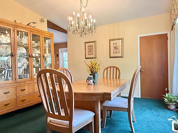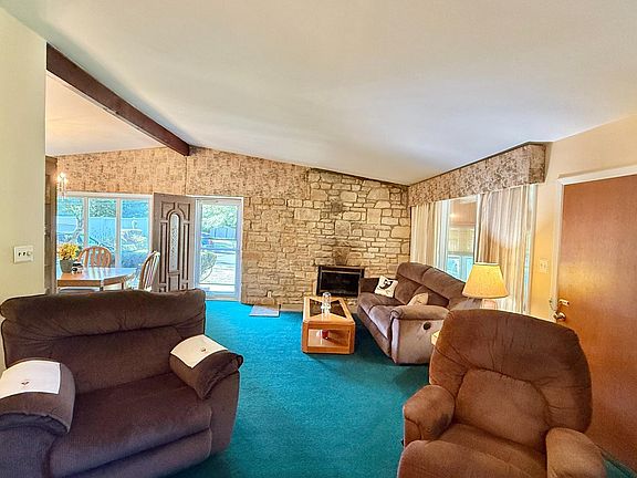 Showings start with the Open House on Saturday, September 27 at 1:00 PM Nicely maintained ranch home in a quiet neighborhood at the end of a dead end street. Large living room with full stone wall fire place and vaulted ceilings. Nice size kitchen with plenty of cabinets for storage and tiled floor. Dining room with vaulted ceiling and wall of windows allowing for a lot of natural light. Three bedrooms with main bedroom having its own private bath. Both full baths have tiled floors and partially tiled walls. Relax in your hot tub in the three season room which has been closed in with windows. Large basement, half finished off with built in bar. Other half has plenty of storage with the washer, dryer and extra refrigerator. Outside access. New hot water heater. Nicely maintained yard and landscape. Partially fenced.