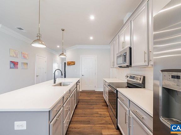 Location, Location! This is not just another townhouse in Crozet! It is located in a small (35 unit), friendly neighborhood, just steps away from Crozet's Community Park (dog park, baseball and soccer fields, pickleball courts, swimming pool and gym), Crozet's Connector trail for walks or runs to the Lickinghole Reservoir and a short walk to downtown Crozet's library, restaurants and shops. It also backs up to common green space. All morning the sun pours in through the back slider and windows, where you can have your morning coffee, lunch or dinner on the deck. Inside you'll find a beautiful kitchen with stainless steel appliances, and quartz countertops, a first floor primary suite complete with two vanities, a spacious shower, and generously sized walk-in closet! Utilize the two upstairs bedrooms with full bath, and den with wall to wall carpeting for family, home office, guest bedroom, or exercise room! All just 10-min from Western Albermarle High School, and 20-min from Charlottesville! Open House Sat 03/08 12-2PM!