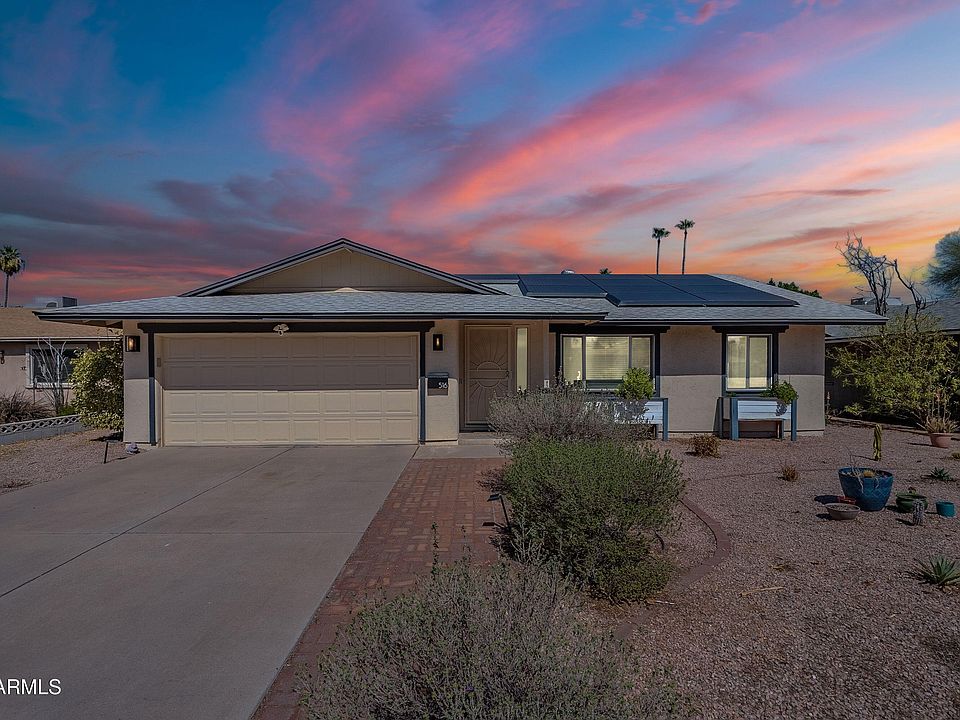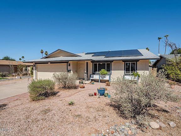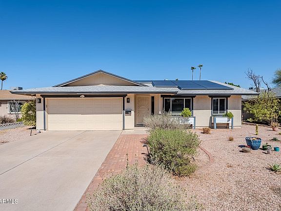 Move-In Ready Cozy Home in Tempe with no HOA! Features Tile w/updated Baseboards Throughout the Home no carpet.  3 Bedrooms all feature walk-in Closets, 2 Bathrooms w/Quartz Countertops. Kitchen has Upgraded Cabinetry, Granite Counters, Breakfast Bar, newer Appliances including Fridge, R/O System, Upright Freezer, Washer & Dryer, located in Pantry. Energy Efficient upgrades include Newer HVAC, Solar, Roof, Dual Pane Windows, Ceiling Fans, Invisible Screen Door, Added Insulation, Patio Cover Replaced & Exterior Painted 1 year ago. 2 Car Garage, Convenient EV Charger, Water Softener, Built-In Shelving, & Work Bench. Grassy Backyard, In-ground Wooden Chess Board, Raised Garden Planters, Composter & RV Gate to Alley. Walking Distance to EOS Gym & Kiwanis Park. Close to Tempe Town Lakes & ASU Summary of Home Features and Improvements: