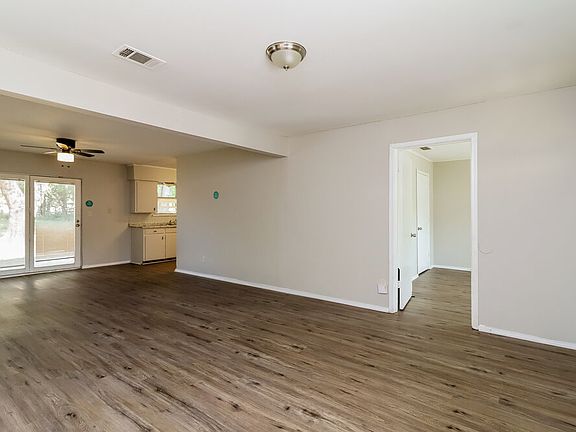 Located in Mansfield, Texas, this four-bedroom and two-bathroom rental home is sure to capture your attention. With 1,535 square feet of space, this one-floor house also offers a kitchen, laundry room, dining room, and living room. The clean kitchen features white appliances, a pantry, and lots of countertop and cabinet space. Walk right out of the sliding glass doors located in the living room, which has plenty of light and a ceiling fan, to the fenced-in yard. The main bedroom suite features a bathroom with a walk-in shower. This pet-friendly home has a two-car garage as well. Further, this move-in-ready house comes with central heating and cooling. You can schedule a tour of this property today.