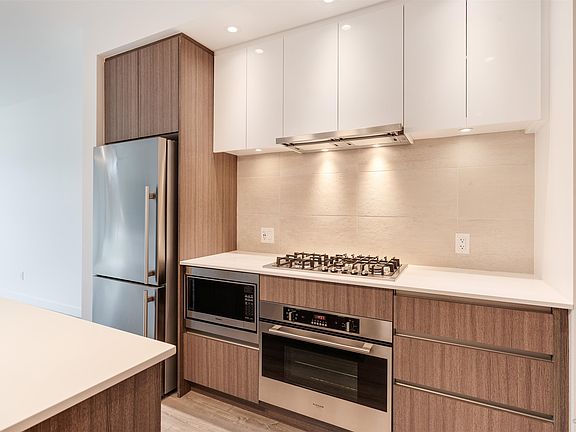 Designer kitchenStainless steel appliancesGas rangeQuartz countersLaminate flooringEn-suite bathroomFull sized den