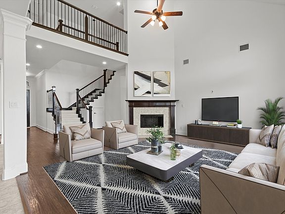 The gourmet kitchen features stainless steel appliances, gas range with kitchen hood and a large island with granite countertops perfect for hosting family and friends. Enjoy the expansive primary suite offering a serene retreat with a luxurious en-suite bath, including dual vanities, a soaking tub, separate shower and impressive walk-in closet system. Additional highlights include wood flooring and a cozy fireplace in the living room, a 2-car garage, and a private backyard with room to relax or play.