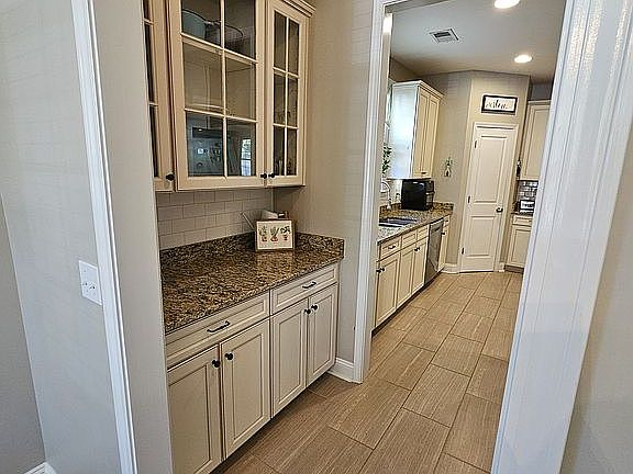 - Kitchen: Bar, Counter Tops-Granite, Eat In, Recessed Lights, Cabinets-Glazed, Backsplash-Granite