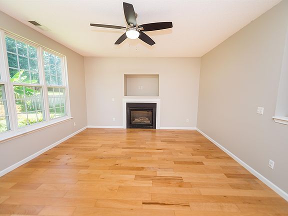 Discover this beautifully updated 1,874 SQFT home featuring 4 spacious bedrooms and 2.5 bathrooms. The open floor plan is perfect for modern living and entertaining, enhanced by a cozy gas fireplace in the living area. The kitchen boasts ample countertop and cabinet space, making it ideal for both everyday cooking and entertaining guests. The primary bathroom is a true retreat with a walk-in shower with a glass door, dual vanities, a garden tub, and a large walk-in closet. One of the secondary bedrooms is exceptionally large and can be used as an office or a movie room, offering flexible living options. Step outside to a fenced-in backyard, complete with a large treehouse, mature landscaping, and ample space for pets, play, or privacy. The driveway includes an extra-large parking pad leading to a 2-car garage, providing plenty of parking. This home is freshly painted with new carpet throughout and a brand-new HVAC system installed in June 2024, ensuring comfort and efficiency. Located in a community that offers fantastic amenities, including a pool, playground, walking trails, and a community pond, you'll have everything you need right at your doorstep. Don't miss out on this perfect blend of comfort, style, and convenience. The property also features blueberry bushes, ample birds and a treetop view from the primary bedroom! Schedule a tour today and make this house your new home!