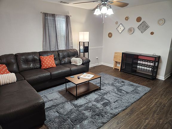 This is a 3bed/2bath home on a huge lot, fenced with privacy fencing. It has 3 large bedrooms and 2 updated bathrooms. 1 bath is an ensuite attached to the master bedroom. The home offers a split layout with the master on one side and the 2 bedrooms on the other. The kitchen is also updated with new counters, painted cabinets & new appliances. This home does not have a garage, but does have a 20'x12' storage area. It also has a dedicated area to be used for storage or an office inside the home. There is a huge, private & fully fenced back yard. There is a concrete pad/patio and a fire pit in back to enjoy the peace and quiet of the location.