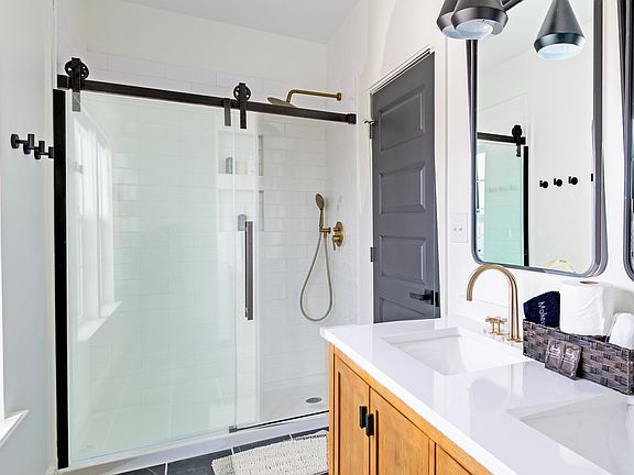 Modern plant wall featureQuartz countertopsStylish coffee barTwo primary suitesFarmhouse pendantsBright spacious entryLight-filled designer kitchen