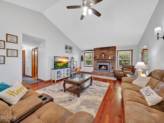 Are you looking for a one level home in a low restriction, No HOA neighborhood perfect for families of all shapes and sizes?!? You've found it, and how would I know? it's my neighborhood too! For 20 years I have lived in this subdivision, walked my dog and strollered my babies up and down these beautiful streets with well maintained homes and mature trees. Trick or treat with the kids, have cookouts with the neighbors or ride your bikes... it's that kind of subdivision! The location is FABULOUS being 20 minutes from Downtown Knoxville, Downtown Sevierville or Downtown Maryville. We have a great small town feel while being close to everything. Sevier County has award winning school systems and super low taxes. What's more, this all brick rancher is positioned on one of the only streets in the subdivision with a MOUNTAIN VIEW! Stunning Smoky Mountain scenery surrounds you from the covered front porch and is visible from all the front rooms of this beautiful home. All 3 bedrooms have walk in closets, fresh neutral paint and BRAND NEW carpet! The hall bath was remodeled in 2021 to now include a walk in shower, neutral tile flooring, new vanity top and lighting. The master bath is original to the home with a tub/shower combo, 100% livable but could be completely updated for very little money! The living room boasts a vaulted ceiling, an all brick fireplace (gas ready), and a bright airy feel with tons of light. The large kitchen has new tile flooring and ample cabinet storage. The kitchen appliances are all 5-6 years old so still plenty of life left to live. Attached is a breakfast nook and a formal dining area (with that gorgeous mountain view). The property has an awesome backyard too! It's level, fenced and perfect for kids, dogs, entertaining or just sitting on the back patio. The gas grill remains with the property and is hard lined to natural gas so no more messing with propane tanks! Storage shed also remains and is only 4 years old in great shape, use it for clean, dry storage or make it your own he/she shed. The house has brand new windows and blinds throughout (2025), new gutters (2025), and the 18X20 carport was also just purchased this year and makes perfect boat / RV / extra vehicle storage. The roof and HVAC unit are both 10 years old and in good condition. Don't miss out, a home like this in the price point will go quickly. All information provided is deemed accurate but not guaranteed, buyers to very to satisfaction. Drone photography and virtual twilight used.