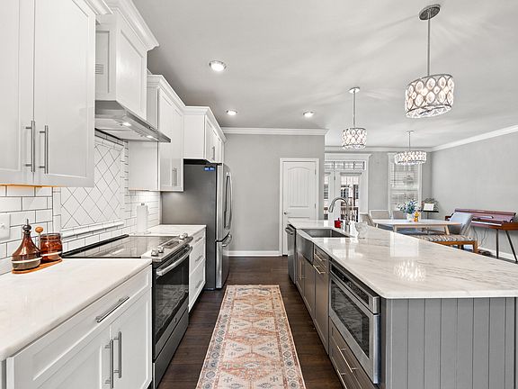 Easy living in the heart of downtown Lexington! This beautifully maintained 3-level townhome is located in the gated community of Townhouses at Jefferson Street, offering unmatched convenience with restaurants, distilleries, entertainment venues, and Rupp Arena all within walking distance. A gated front garden that leads to the entry level with a welcoming foyer, private ensuite bedroom perfect for guests, custom built-ins, hardwood floors, and direct access to the spacious 2-car garage. Travel upstairs to the main level with an impressive open-concept living space featuring a kitchen with quartz countertops, oversized island with seating, serving bar with handsome cabinetry & beverage coolers, pantry, dining area, and patio doors leading to a relaxing outdoor deck. The great room boasts a spacious entertaining space with electric fireplace and an abundant natural light. Powder room for guests also on this level. Hardwood floors throughout. The upper level holds an impressive primary suite with wood-beamed ceiling, double vanities, tiled shower, and walk-in closet with custom shelving. Plus an additional upper-level en suite bedroom. Other notable features: Custom built-ins, custom woodwork throughout, custom bar with wine cooler and beverage refrigerator, transom stained-glass windows, upgraded lighting, custom blinds, plus hardwood & tile flooring throughout. This low-maintenance townhome combines convenience with exceptional walkability—ideal for anyone wanting to enjoy Lexington's vibrant downtown lifestyle.