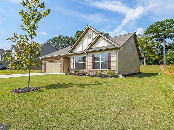 Welcome to 516 McGinnis Cir in Calhoun! Built in 2022, this beautifully designed 3-bed, 2-bath ranch home offers the perfect blend of style, comfort, and functionality. With 1,815 sq ft of open-concept living space, this home is ideal for both everyday living and entertaining. Step inside to find a spacious family room with a fireplace, and a bright, modern kitchen featuring 42" cabinets, granite countertops, subway tile backsplash, and a large 6-foot island overlooking the living area. Enjoy your morning coffee in the breakfast nook or step out to the covered patio for easy indoor-outdoor living. The private owner's suite boasts an oversized bedroom with a spa-like bath complete with granite countertops and SPC tile flooring. A split-bedroom layout ensures privacy for family or guests. Located in the sought-after Henderson Glenn community, this home combines modern finishes with the convenience of Calhoun living-just minutes from schools, shopping, and I-75.