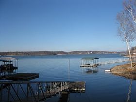 Lakefront Cabin-3 bedrooms, 2 baths, Living room, family room, FP, Kitchen, walk-out basement large patio/Deck with hot tub, boat house with rail system, Flat swim dock, and ramp upper level deck also with great view of the lake. SELLING AS IS. Bank of America pre-qualification required with all offers.