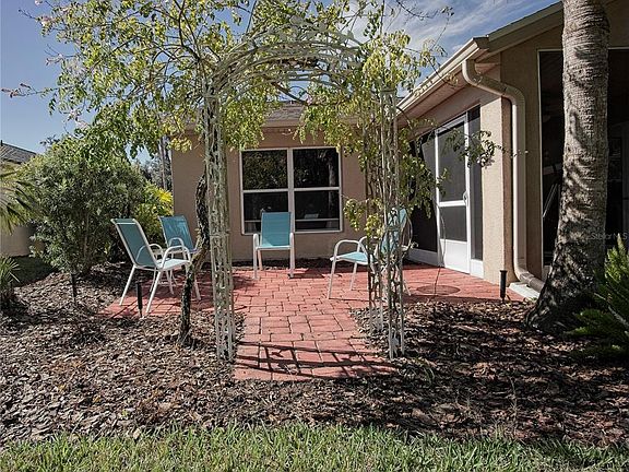 Welcome to this beautifully maintained home, thoughtfully designed for comfort, efficiency, and low-maintenance living. Located on a quiet cul-de-sac and backing up a tranquil conservation area, this home offers peace and privacy. Located in Solivita, one of the nation's premier 55+ communities, this residence offers the ideal setting for those seeking an active and fulfilling lifestyle. Upgrades include New Roof (2025) - Stainless Steel Appliances - Bathrooms - new toilets, faucets, shower fixtures, and sleek glass shower door. The open-concept layout seamlessly connects the living, dining, and kitchen areas, creating a spacious, inviting atmosphere ideal for entertaining and everyday living. The large kitchen is stylish yet functional, with ceramic tile flooring, abundant wood cabinetry, pull-out drawers, and a nook for a dinette set. Enhanced privacy with a split-bedroom layout, positioning the primary suite and guest room on opposite sides of the home. The primary bedroom at the rear offers serene views of a lush conservation area and features a large walk-in closet and en-suite bath with vanity and a walk-in shower. Step outside to a versatile, beautifully designed outdoor living space that expands the home’s livability and charm. A screened lanai serves as a sheltered retreat for year-round enjoyment, providing a seamless transition between indoor comfort and outdoor serenity. Flanking the lania are two paved patio areas, thoughtfully constructed with durable materials for easy maintenance and long-lasting appeal. These outdoor zones are ideal for hosting gatherings, from lively celebrations to peaceful evenings under the stars, offering a perfect balance of functionality and beauty. Just a short walk from one of Solivita’s 14 community pools, you'll enjoy convenient access to resort-style amenities and a vibrant social scene. This move-in-ready home combines smart design, recent upgrades, and a prime location, making it the perfect choice for those ready to embrace the best of 55+ living. Amenities include two championship golf courses, 14 heated pools, two state-of-the-art fitness centers, pickleball, tennis, bocce, walking trails, and over 200 clubs and activities. Residents enjoy multiple dining options, art studios, a ballroom, and full-time lifestyle staff.