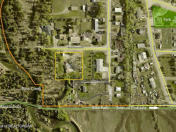 It is hard to beat this location in the town of Pinedale. Located at the end of Moose Street, this 3,800 sf ranch style home features an incredible setting amongst tall shade trees and expansive lawn areas. Its proximity to schools, shopping, Pine Creek and the community bike path make this large .97 acre site a one of a kind type of property. Short term rentals allowed and no HOA. The home has been well maintained and updated in recent years. Features include: open floor plan, spacious kitchen with large butcher block island, five expansive bedrooms, 3.5 bathrooms, additional game/family room in the basement, pool table, large rear deck with composite decking, concrete pad for basketball/recreational use, two car heated garage, 648 sf shop building, covered storage, fully fenced, forest views, sprinkler system and circle driveway.