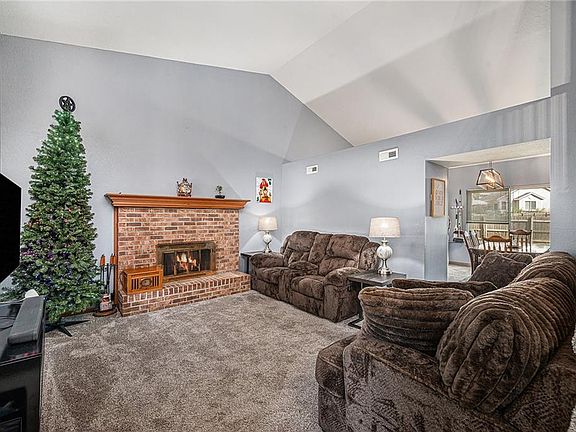 Welcome to a home designed for everyday living with room to gather, recharge, and enjoy. The main level centers around a bright living room with a fireplace and tall ceilings that give the space an inviting openness. Just steps away, the eat-in kitchen is practical yet welcoming, with plenty of space for preparing meals and sharing them around the table without feeling crowded.
