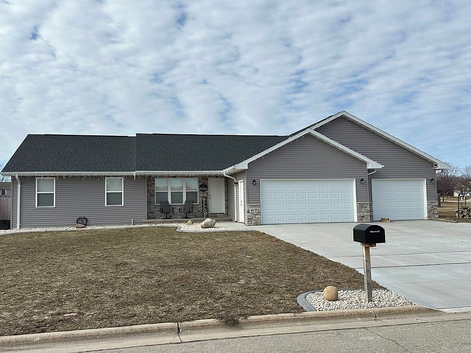 Gorgeous new zero entry 1,429sf ranch on 0.27 acres in Pulaski. Open floor plan, with 3 bdrms , 2 baths and 3-stall att garage. Lrg lvg rm w/cathedral ceiling. Kitchen has snack counter/island & includes a dishwasher oven/range and microwave. Master bdrm with a large WIC & master bath w/walk in shower. 1st floor laundry, basement is plumbed for future bath central A/C and a poured 16x16 patio all included. Showings begin 2/29/2024.
