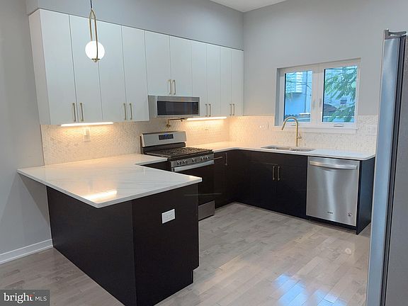Welcome to this brand new contemporary home offering 4 bedrooms and 3 full bathrooms in one of Philadelphia’s most sought-after neighborhoods. Step inside to discover a spacious open-concept layout featuring hardwood floors, recessed lighting, and a modern steel stair railing. The chef’s kitchen is equipped with soft-close cabinetry, quartz countertops, custom backsplash, and a full stainless steel appliance package. From the kitchen, walk out to your private backyard—perfect for outdoor dining or gardening. The second floor presents two generously sized bedrooms with great natural light, along with a full custom bathroom. The third floor is dedicated to the luxurious primary suite, complete with a large walk-in closet and a spa-inspired bathroom with dual vanities and designer finishes. A fully finished basement adds additional living space, ideal as a fourth bedroom, home office, or gym. Enjoy the convenience of upper-level laundry, energy-efficient HVAC, and contemporary finishes throughout. Finally, head upstairs to the expansive private rooftop deck with stunning city views, perfect for entertaining or relaxing. This home combines style, functionality, and location—don’t miss the opportunity to make it yours!