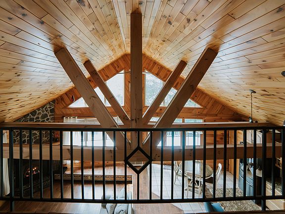 Welcome to your woodland oasis at 516 Quaker Ridge Road! Nestled on over 2 acres of lush land with nearby trails, this peaceful sanctuary offers the perfect escape. Step inside this contemporary cape featuring 2-3 bedrooms and marvel at the views from cathedral ceiling windows overlooking the beautiful landscape. The wraparound porch provides an ideal setting for both entertaining and relaxation.