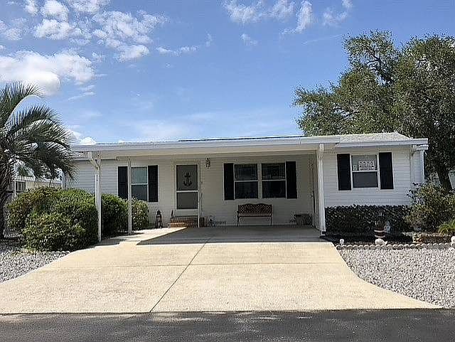 Whether you plan on part time or full time here in Florida, this 1996 Palm Harbor home will have the space and comfort. This home has natural gas throughout the home. This home is 1232 sq ft, with an additional 150 sq feet in Florida room. Walking in the home there is an open feeling, with the bedrooms split on each side of home. Master bedroom, large walk in shower and the 2 guest bedrooms spacious with a guest bathroom. Galley kitchen with newer appliances and the laundry is off this room. Large pantry, Dishwasher, washer/dryer 2020, Water Heater 3 yrs old. Large double carport 20x20. Backyard patio. No mowing! Come see Hacienda and this home. It is a Lifestyle to enjoy!!
