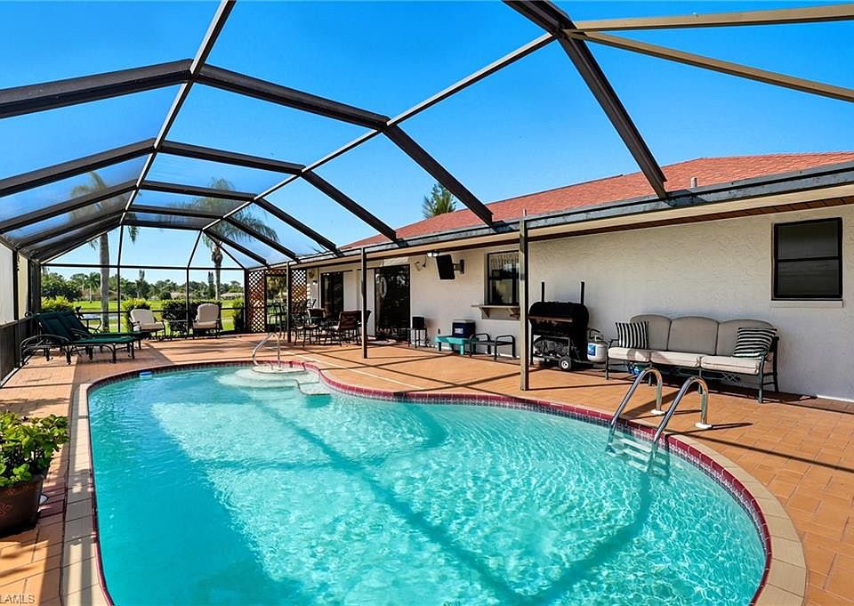 Looking for privacy? This absolute charmer is available and ready for the next owners. Situated on a large corner lot giving you a beautiful lake view, this meticulously cared for pool home is located in one of Lehigh's most desirable neighborhoods. Newer Roof (2021) New Whirlpool Appliances including Oven, Dishwasher, and Refrigerator in 2022, Freshly Painted, Updated Flooring in the living area, automatic sprinkler system keeps the yard looking fresh. Enjoy the sunrise from your screened in lanai while looking out at the lake. This home is perfect for a first home buyer, snow bird, or an investor. Schedule your appointment today and see it for yourself.
