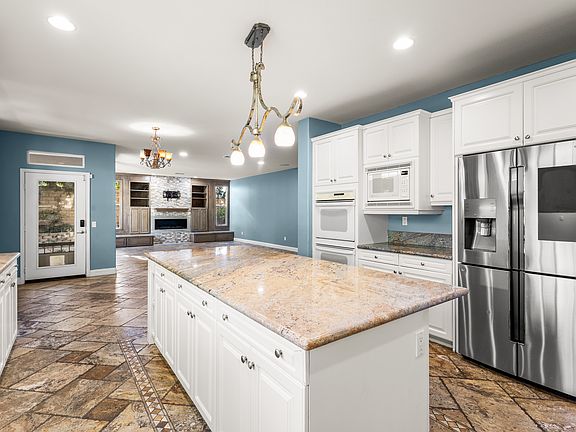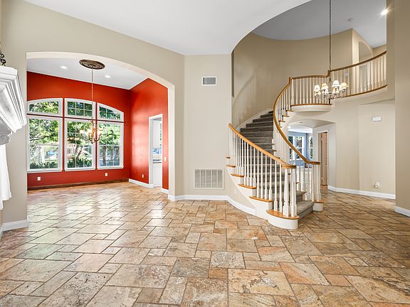 Welcome home to 516 Rustic Hills Drive, a stunning luxury estate located within the exclusive gated community of The Oaks at Wood Ranch. This home has 5 bedrooms, 5 bathrooms, approximately 4,103 square feet of living space on an expansive 16,758-square-foot lot, this is the largest home and lot within the community. The grand formal entry has soaring ceilings and opens seamlessly to an elegant, expansive dining room, setting the tone for refined living and entertaining. The chef's kitchen is thoughtfully designed with granite countertops, travertine flooring, an oversized center island, walk-in pantry, and abundant custom cabinetry for exceptional storage. Off the kitchen is a spacious family or living room with a fireplace to watch tv in. The main level offers a versatile game room or bedroom complete with its own private entrance and ensuite bathroom ideal for guests, or a private office. Upstairs, the spacious primary suite is a true retreat, featuring a dual sided fireplace, private balcony, and space for a sitting area or home office. The luxurious primary bath includes a large walk-in shower, separate soaking tub, and two generous walk in closets. The guest bedrooms are privately situated in their own wing, including one with an ensuite bath and two additional bedrooms sharing a dual-access bathroom. An upstairs laundry room adds everyday convenience. The resort style backyard is an entertainer's dream, showcasing a built-in BBQ, covered pergola, play set, sparkling pool with built in water slide, spa, and ample space for recreation, including a basketball area. Completing the property is a long private driveway, a single-car garage, and a separate two-car garage.