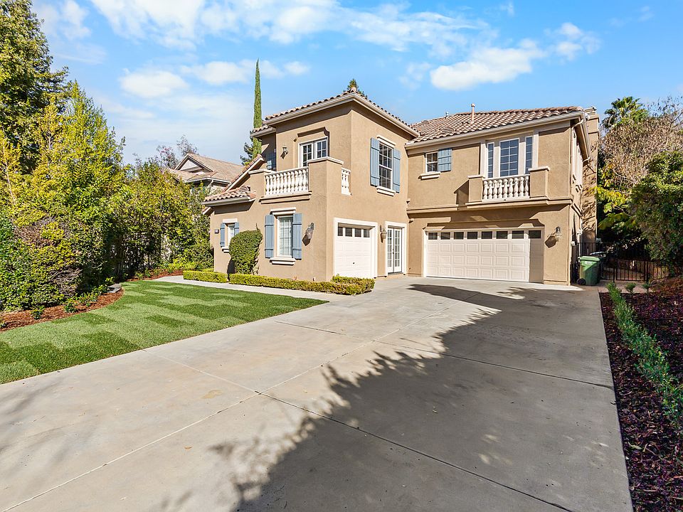 Private balconySingle-car garageSeparate two-car garageOversized center islandUpstairs laundry roomTravertine flooringSeparate soaking tub