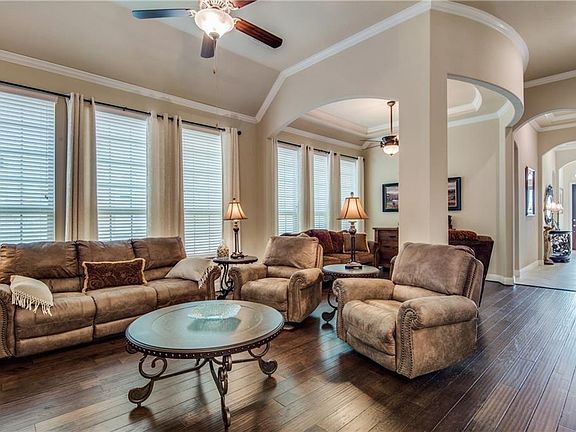 OPEN HOUSE Saturday July 20, 1:00-3:00 pm! Outstanding Villas of Bear Creek home is loaded w many luxury & Energy Star features! 12' Ceilings have Elegant crown moldings, 8 ft solid mahogany front door, SS appliances, 5 burner gas cook top, Beautiful 42in cabinets w under cabinet lighting, granite, wood flooring. Tankless water heater, 16 Seer HVAC, Radiant Barrier and more energy savers! Nice covered Patio and finished out garage w amenities including graphite sealed floor; overhead storage and work bench stay. Fantastic Master planned community with pool, trails and parks! Fantastic location for easy access to DFW metroplex! Walking distance to American Airlines Headquarters. This is a must see!