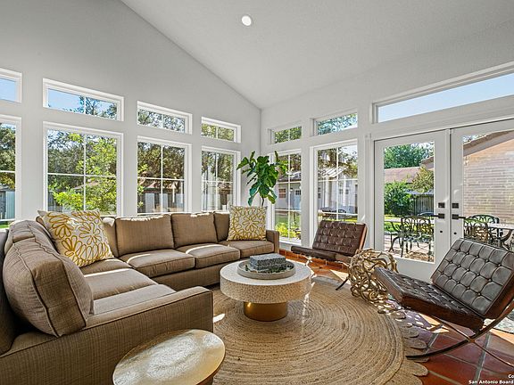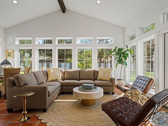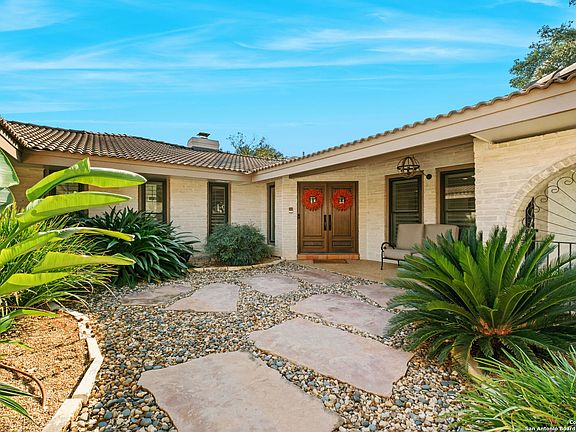 OPEN HOUSE SATURDAY AND SUNDAY 2-4pm Refined Spanish Inspiration in the Heart of Hollywood Park Nestled on a beautifully landscaped half-acre lot, this sophisticated single-story residence captures the timeless allure of Spanish-inspired architecture while embracing the ease of modern Hill Country living. Spanning approximately 3,300 square feet, the home offers three generous bedrooms, two and a half baths and dedicated office each thoughtfully updated with designer finishes and enduring style. The reimagined island kitchen blends high-end appliances, custom cabinetry, and sun-filled gathering spaces perfect for everyday living or elegant entertaining. The open living areas are distinguished by vaulted, beamed ceilings that create an airy sense of space and warmth, flowing effortlessly to the lush outdoor setting shaded by mature oaks. Detached conditioned storage cottage 12x20 offers amazing flexible space- office- exercise- art studio etc. With its seamless balance of craftsmanship, comfort, and understated sophistication, this home offers an exceptional retreat in one of San Antonio's most cherished neighborhoods.