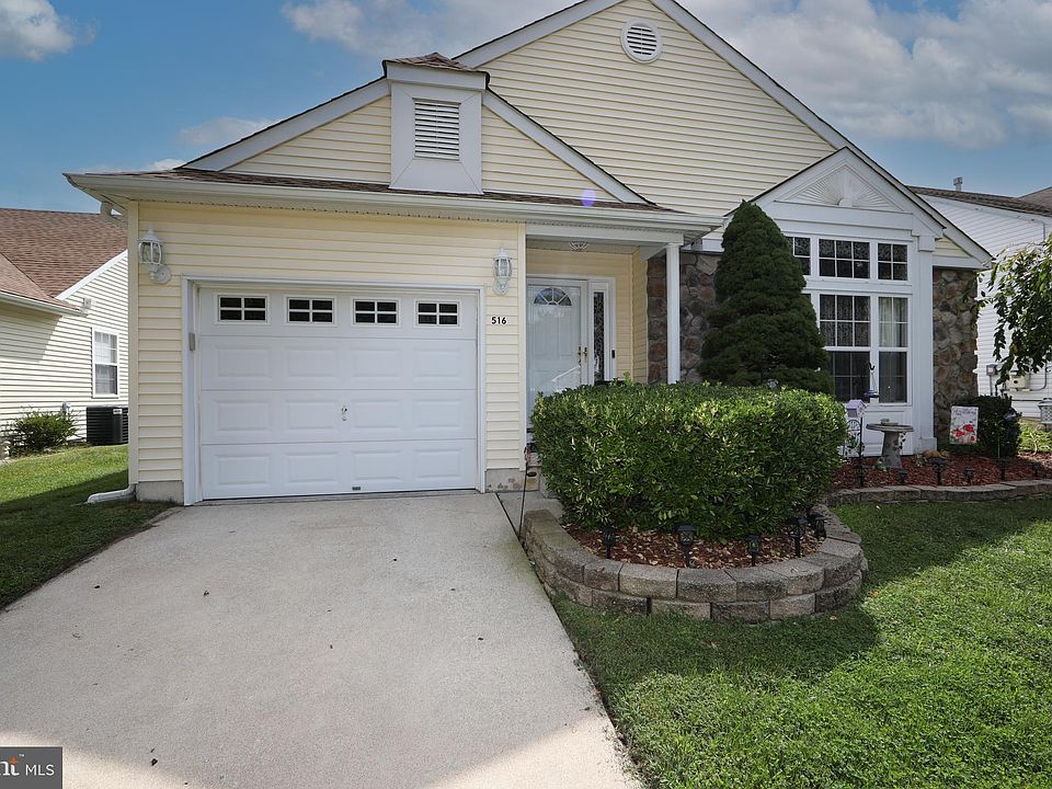 Welcome to 516 St. Martin Court! This beautifully cared-for home is the perfect blend of comfort and convenience. Step inside and you’ll immediately notice the open and inviting layout. The spacious living and dining room combination is ideal for hosting family and friends, while the soaring ceilings add a touch of elegance. New carpet in the front and back living rooms! Whole home was freshly painted as well! Plumbing upgraded and fixtures updated! The kitchen is light and bright, featuring crisp white cabinetry, a stunning hand-cut tile backsplash, and matching white appliances for a clean, cohesive look. The kitchen flows seamlessly into the large family room, creating the perfect space for everyday living. Sliding glass doors lead to a generous patio, perfect for relaxing or entertaining outdoors. This home offers two spacious bedrooms, including a main suite with a walk-in closet and a beautifully maintained private bath. A second full bath, a convenient laundry room, and a finished garage add even more function and value. Recent updates include a roof that’s just three years old, giving you peace of mind for years to come. Located in the desirable Holiday City active adult community, residents enjoy access to a clubhouse, pool, and plenty of social activities. With its convenient location near the Atlantic City Expressway, you’re just a short drive to the Jersey Shore, major shopping, and dining options.