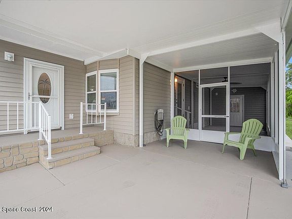 Welcome to your dream home in Barefoot Bay! This beautifully updated 3-bedroom, 2-bath residence offers modern comfort and style on a spacious lot. Enjoy the convenience of new appliances, refreshed plumbing, and electrical systems. Relax in the front screened-in porch or entertain on the back porch with happy hour seating. The property features an outdoor shower, two storage sheds (one perfect for your golf cart), and ample space for outdoor living. AC 2020. Metal roof 2017. Fully furnished and move-in ready—this gem blends modern upgrades with cozy charm. Don't miss out!