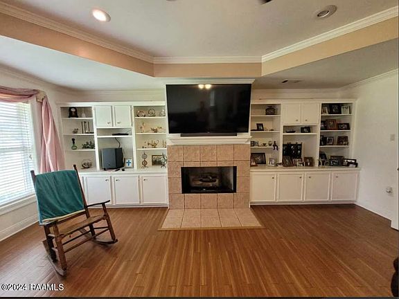 - High Ceilings, Beamed Ceilings, Bookcases, Built-in Features, Crown Molding, Double Vanity, Dual Closets, Kitchen Island, Separate Shower, Varied Ceiling Heights, Walk-In Closet(s), Tile Counters