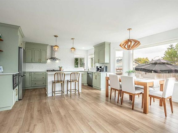 Open concept kitchenLarge windowsWarm inviting spaceVinyl plank flooringNew light fixturesQuartz countersSubway tile backsplash