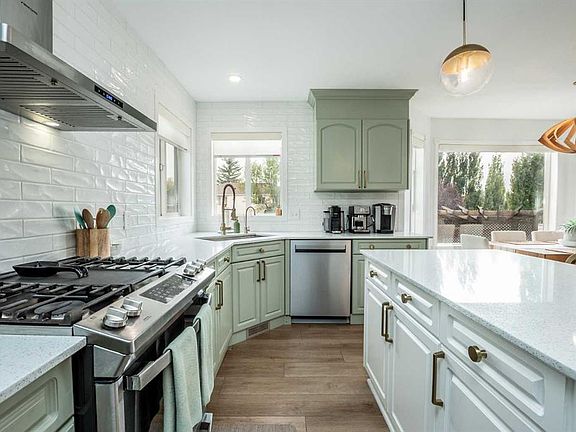 **OPEN HOUSE - SUNDAY, SEPT 21- 1 to 3 ** Wonderful Family Home , Great Location. Open Concept Kitchen, Eating Area and Livingroom with large windows, island and Fireplace creating a warm, inviting space. Entire Main Floor has been Beautifully Updated- vinyl plank flooring, new light fixtures and cabinet hardware, quartz counters, subway tile backsplash, all new appliances in last 3 years. Gas Fireplace with tile, wood mantel. Main floor Laundry Room features built-in cabinet, drying shelf. Washer and Dryer new in last year. Main floor renovated 2-piece Bath. Upper level has Master w Ensuite, jetted tub, 2 Additional Bedrooms and 2nd 4-piece Bath. Fully Finished basement extends living space with Family Room , Wet Bar, 4-piece Bath, Storage. Heated Double Garage. Spacious Fenced Back Yard - 2-tiered Deck, Pergola bench, Concrete RV Parking, Alley access, Dog Run, Shed. Bright, Sunny, Lovingly cared for Home. Don't miss this Opportunity! You'll Love This Home!