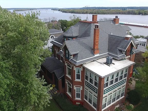 Historic PM Musser home, built high upon the bluff overlooking the mighty Mississippi River. Enjoy panoramic river views from almost every room in this home. This fantastic one of a kind home was built for the PM Musser family in approximately 1866 .The Musser family business was mill working so this home has the best available moldings and finishes for its time. The original custom details are stunning and include Cherry, Oak and Maple. There are 7 unique tile and marble fireplaces and many are still operational. The original stained glass throughout is in great condition and very detailed. Eastlake hardware complements the doors and windows and there are built-it shutters on many windows. The grand entry was built to impress and features a massive open stairway with a Cherry banister and