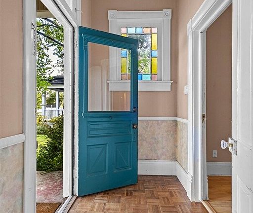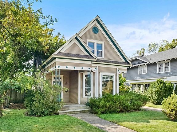 Circa 1905 this Victorian is perfectly situated in Historical Rogers. Ideal for those seeking to restore & enjoy timeless character or create a unique STR near revitalized DT Rogers. Character details include stain glass windows, bay window seating, parquet vestibule entry, glass doorknobs & period trim inside & out. The dining room features a stained-glass transom, & built in display shelving while the family room has bay windows crowned by stained glass. The corner den could also be an office or lower-level bedroom. The updated kitchen with newer appliances & built in pantry opens to a covered porch overlooking a mature yard with dog run. Upstairs find a sitting area, 3 bedrooms, & attic closets for added storage. The front porch was made for visiting with friends. Additional features include 2 dedicated parking spaces off the back alley, an exterior storage room & various updates through the years. Minutes from Lake Atalanta, the Railyard, & all the dining, shopping, & entertainment DT Rogers has to offer!